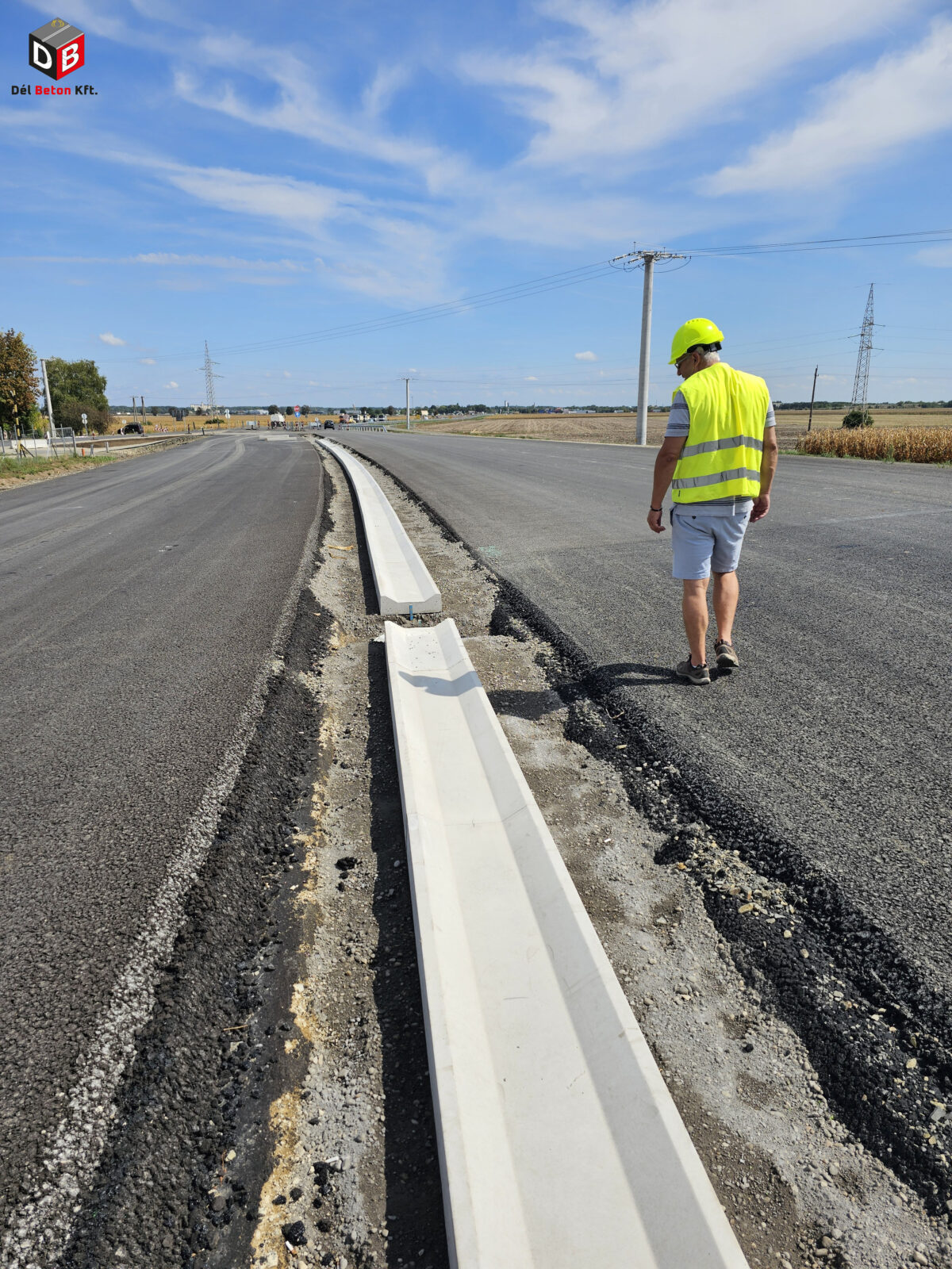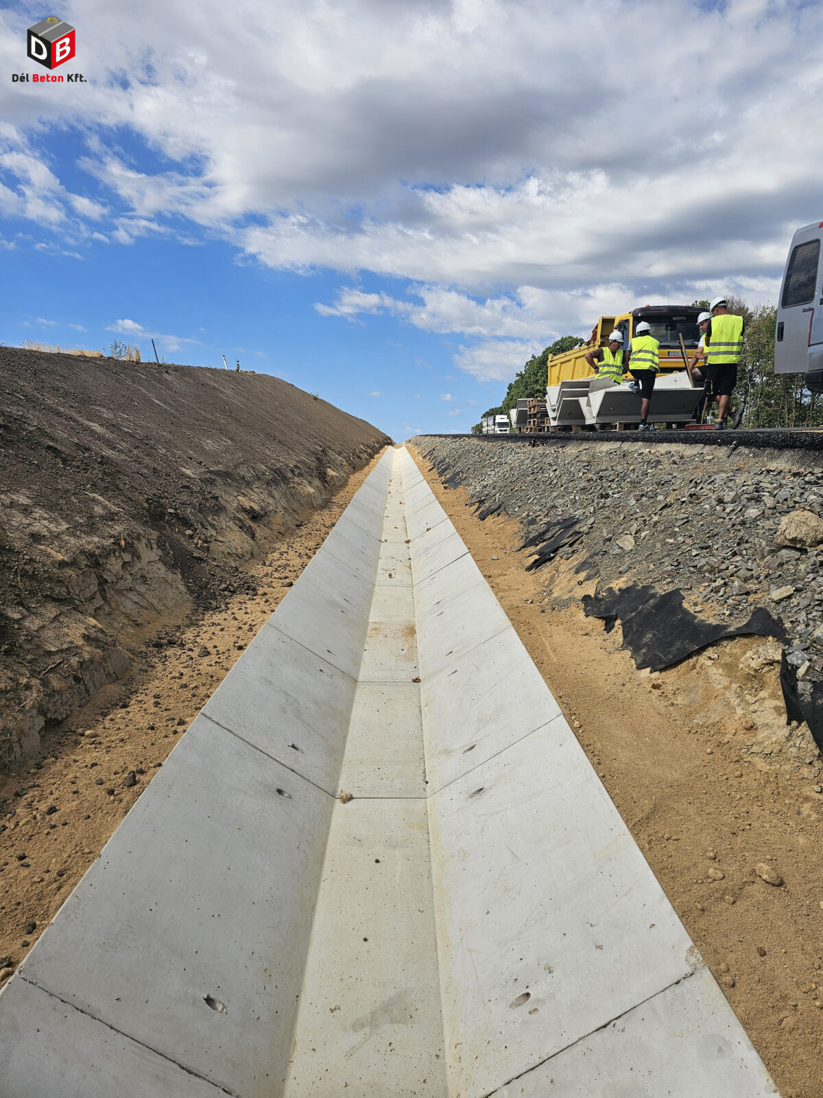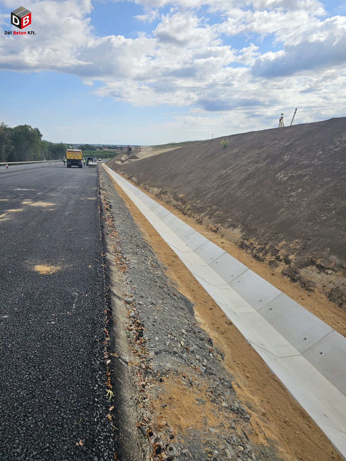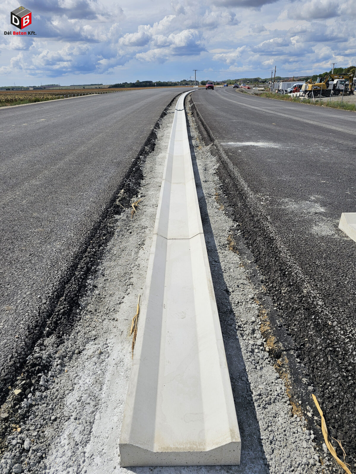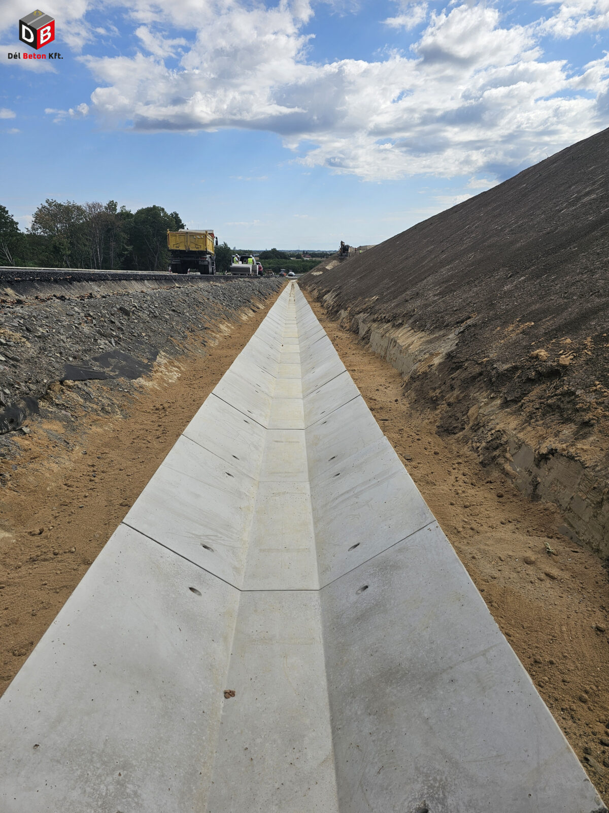 50/200 trapéz alakú átjárható folyóka elem, több mint 2000fm hosszban épült be az 57. számú főút bővítése során.