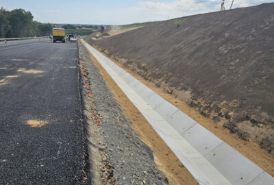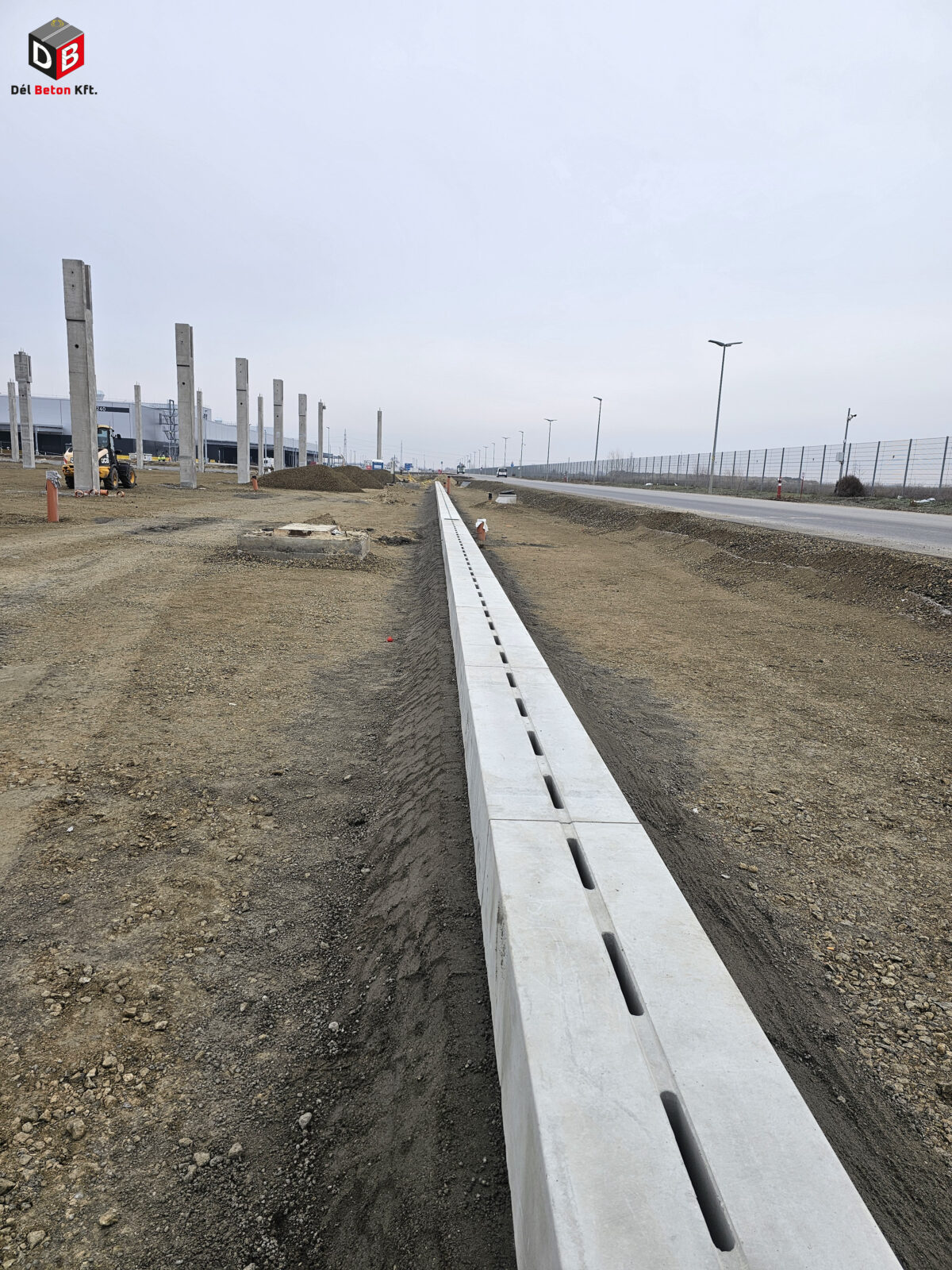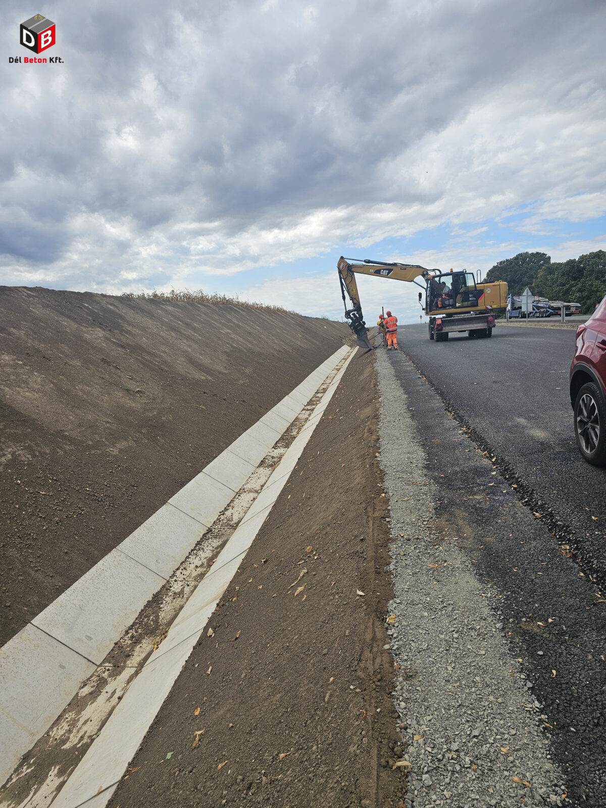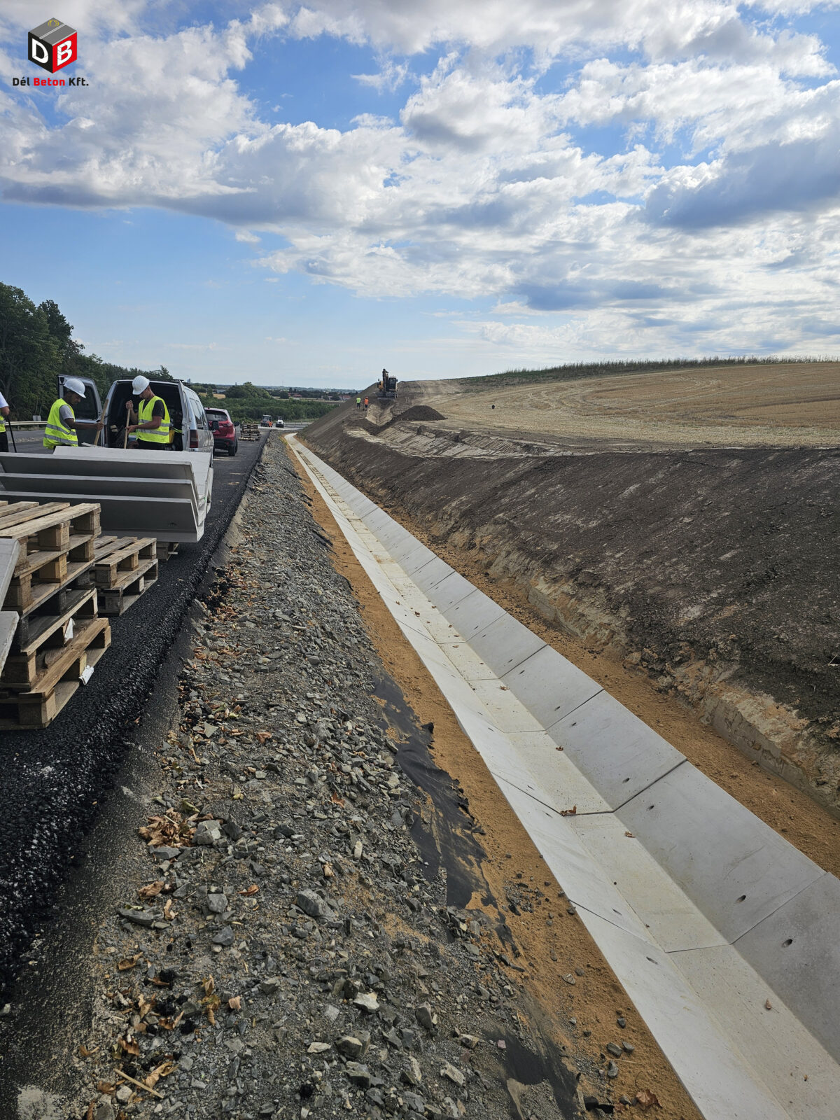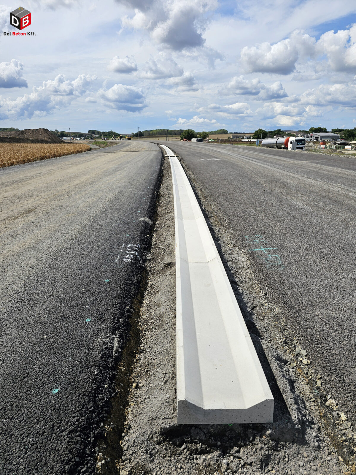 50/200 trapéz alakú átjárható folyóka elem, több mint 2000fm hosszban épült be az 57. számú főút bővítése során.