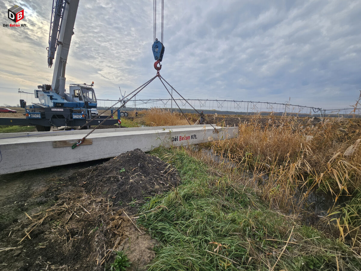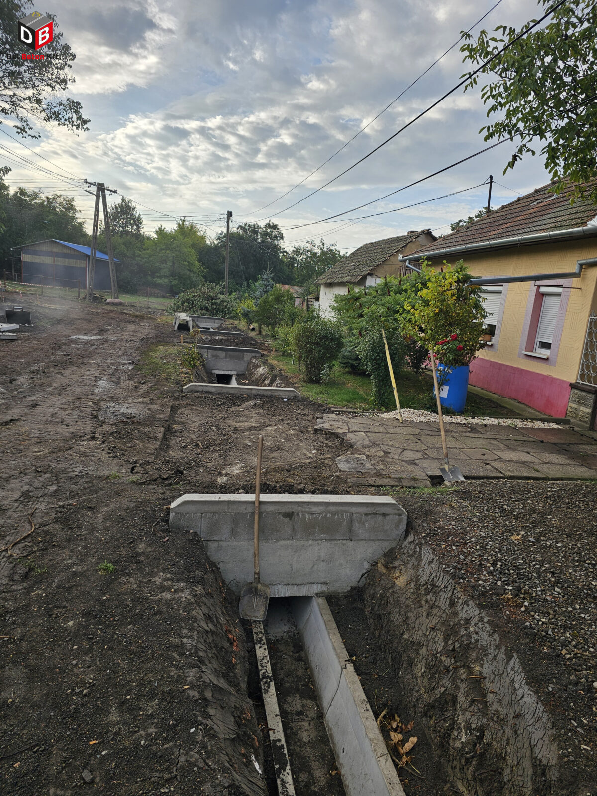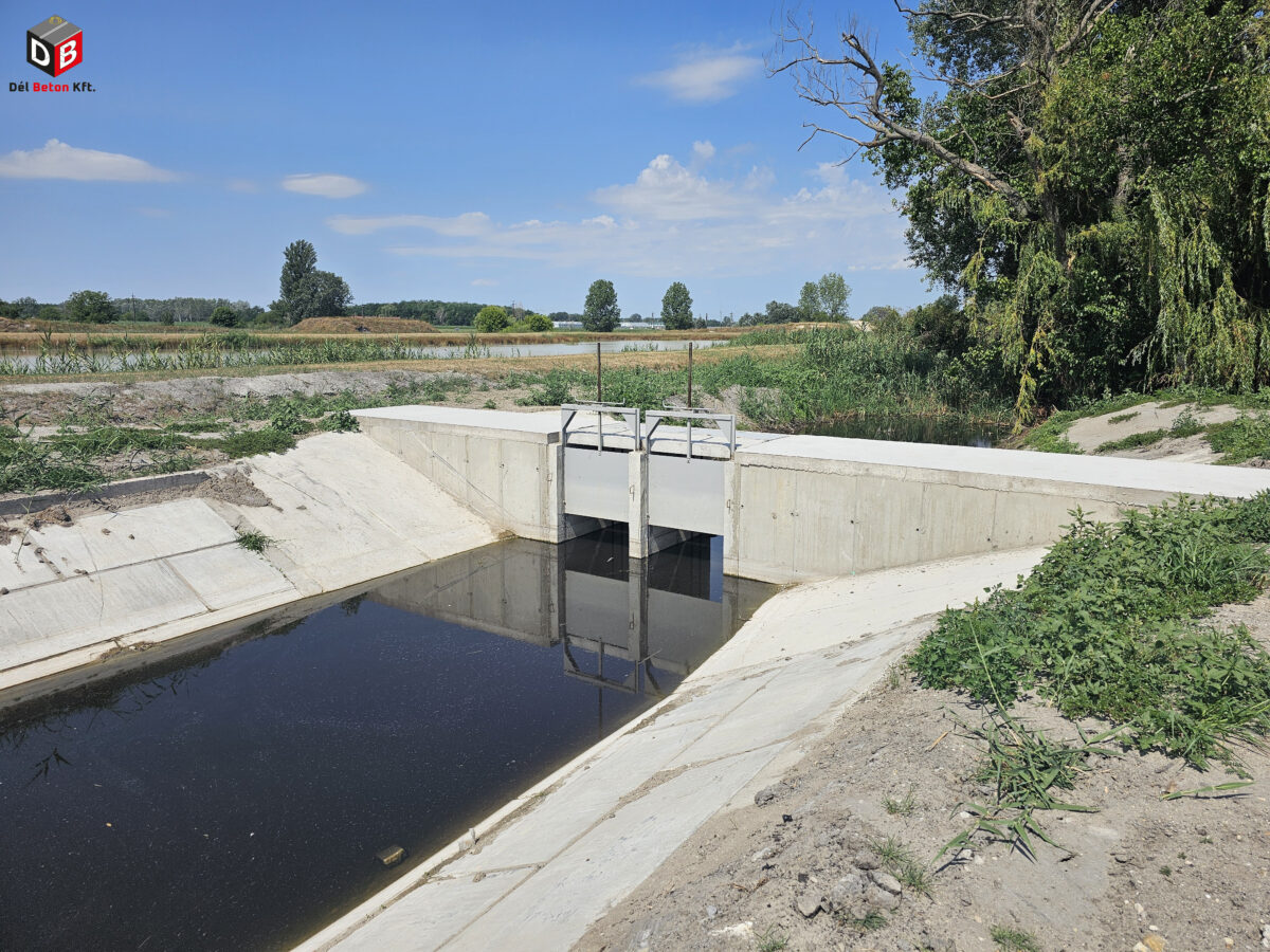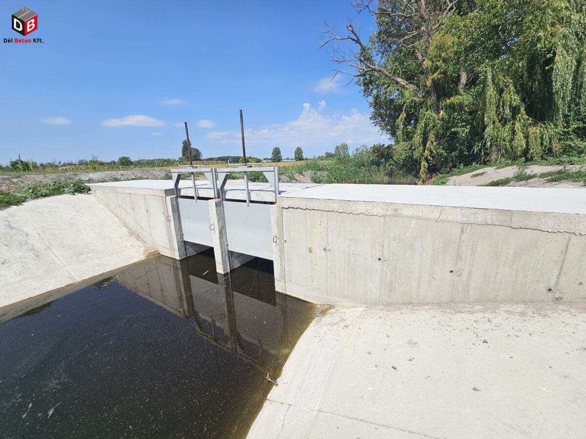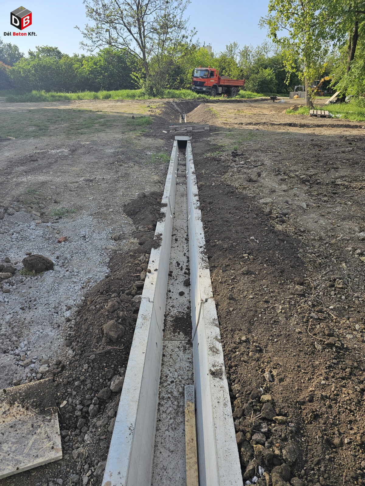 400fm hosszban épült be BM30/50/40 bordás mederburkoló elem, melyekre a kapubejárókban teherbíró fedlapok kerültek elhelyezésre.