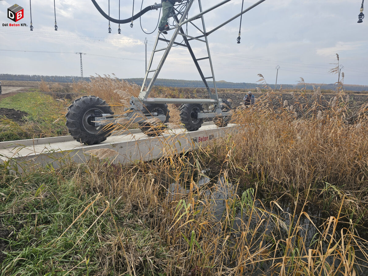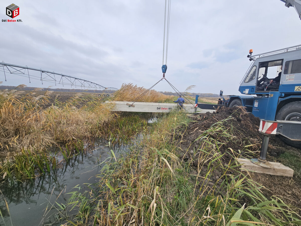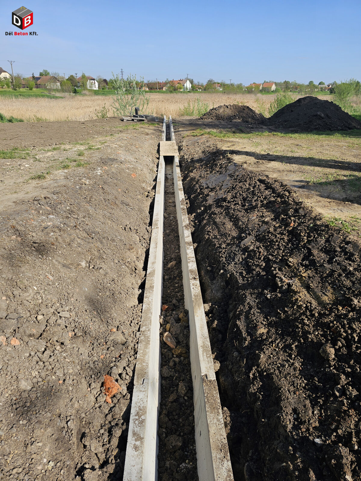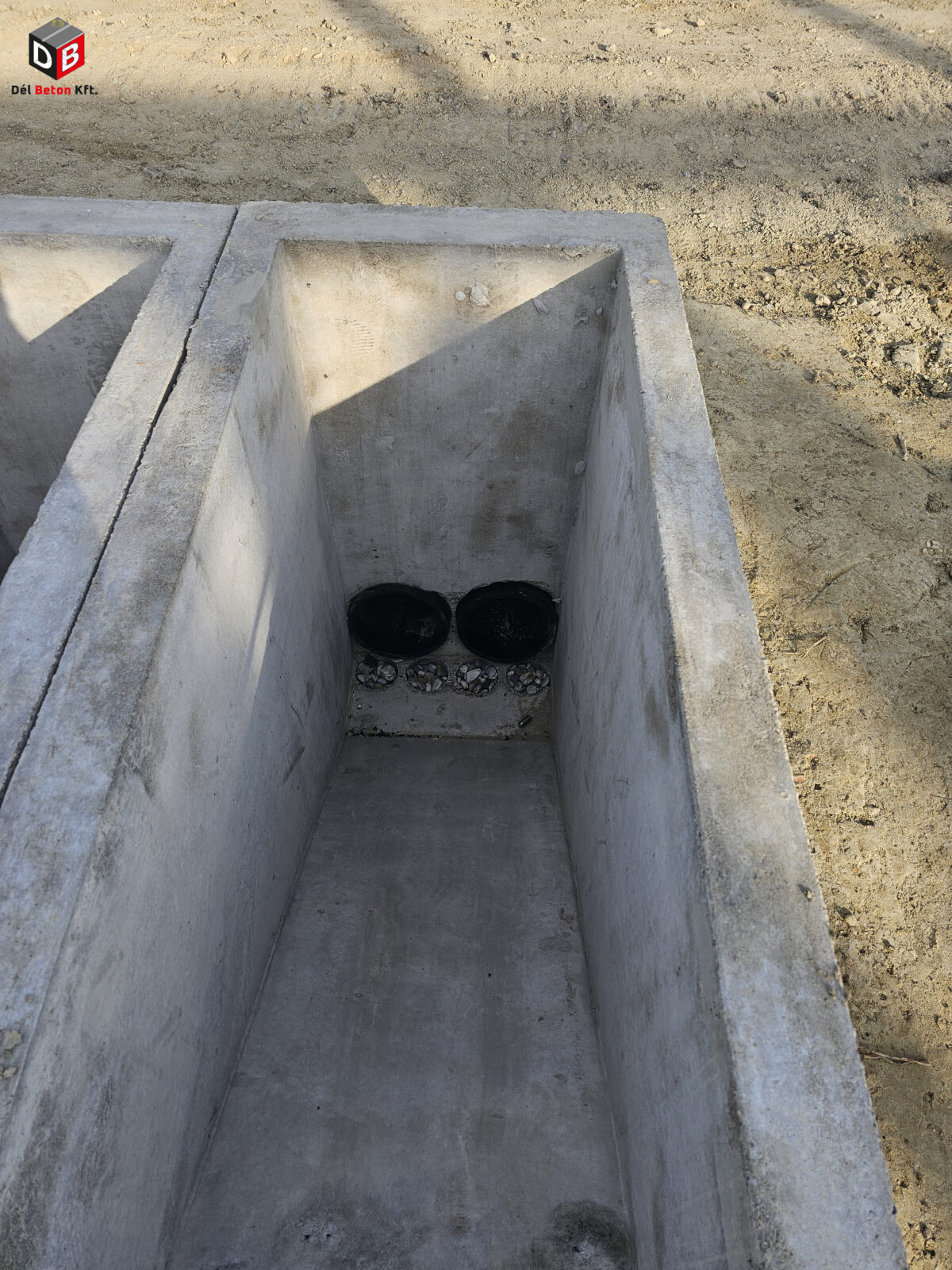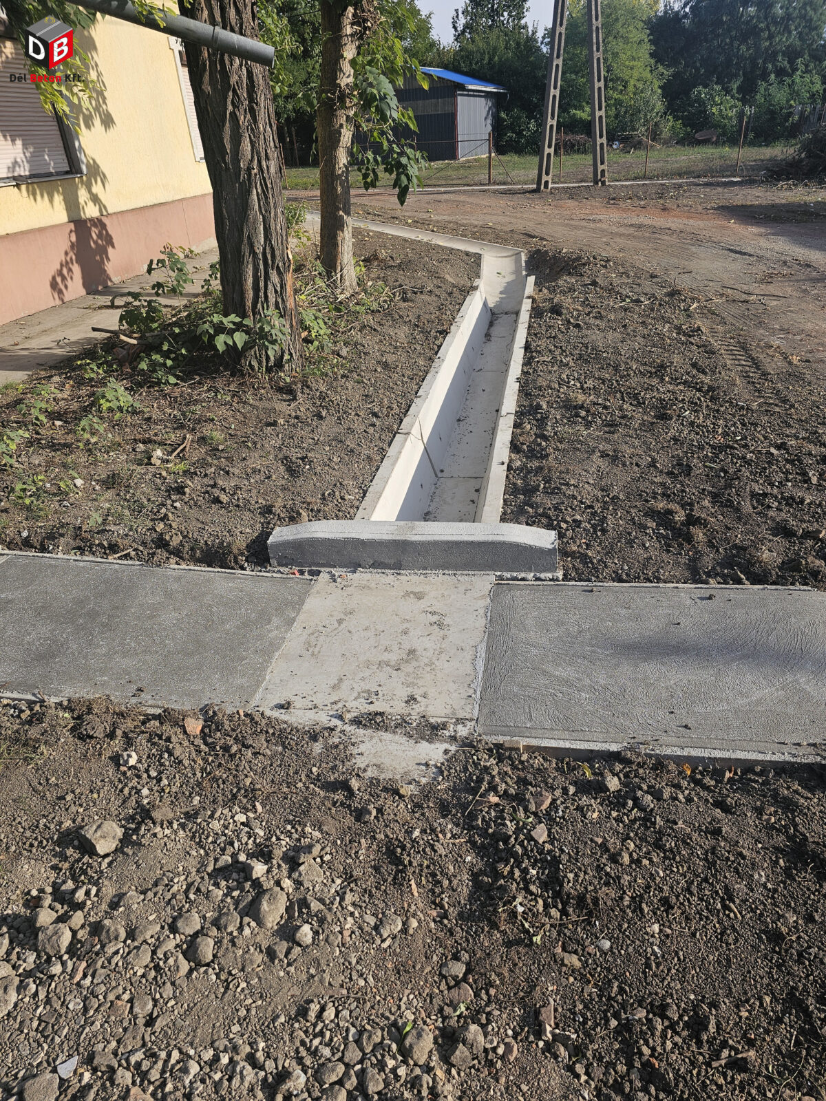 400fm hosszban épült be BM30/50/40 bordás mederburkoló elem, melyekre a kapubejárókban teherbíró fedlapok kerültek elhelyezésre.