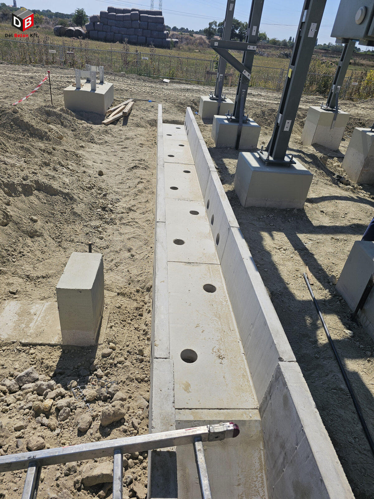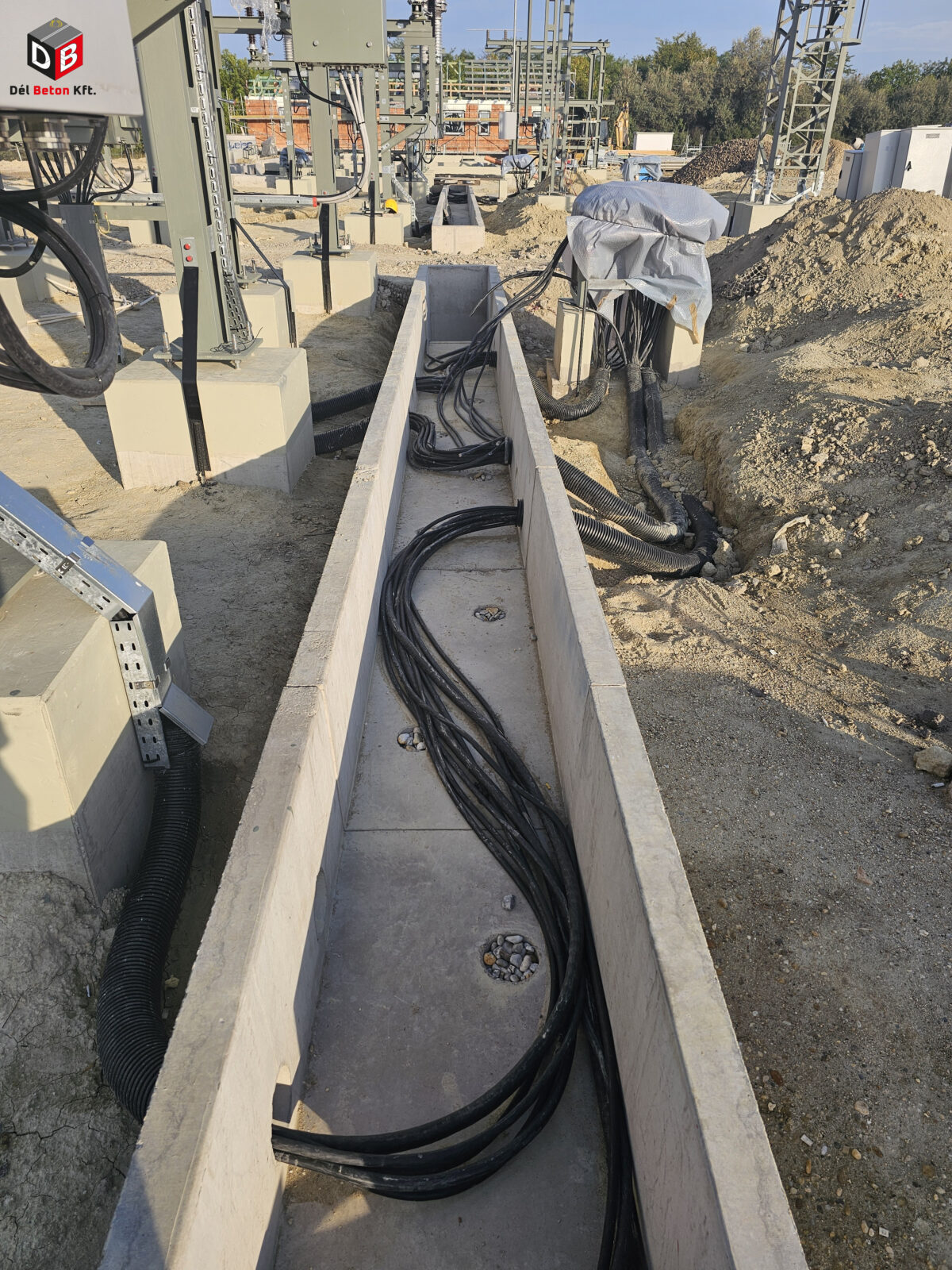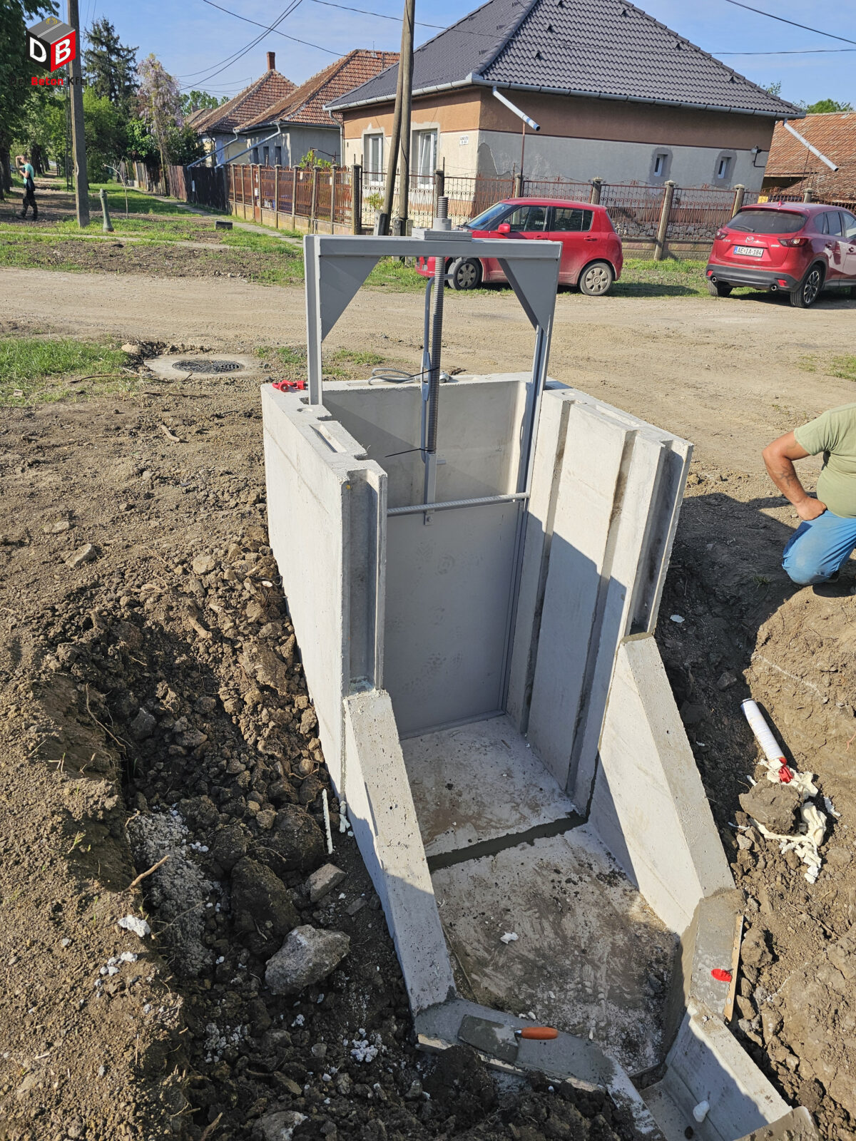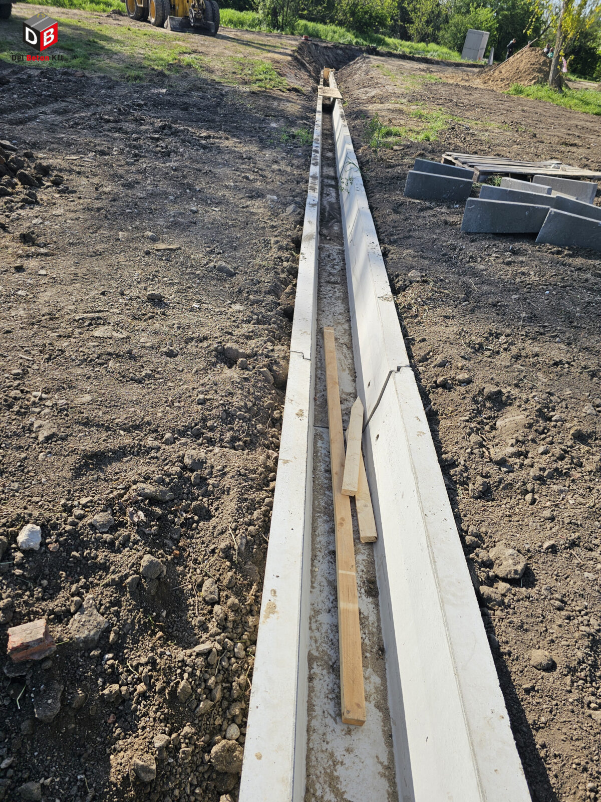 400fm hosszban épült be BM30/50/40 bordás mederburkoló elem, melyekre a kapubejárókban teherbíró fedlapok kerültek elhelyezésre.