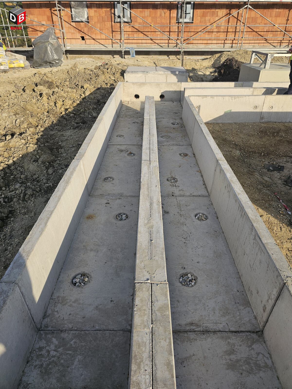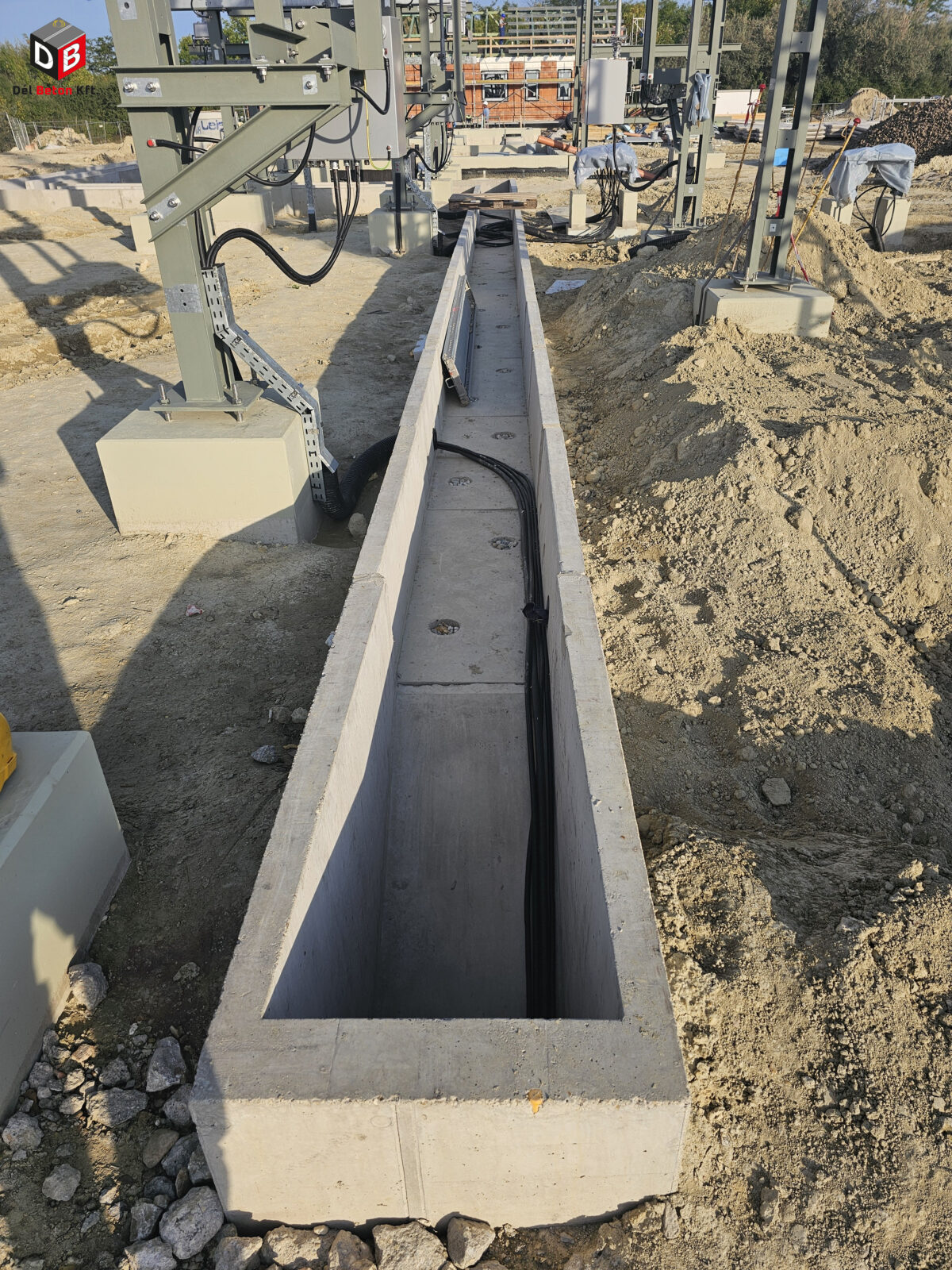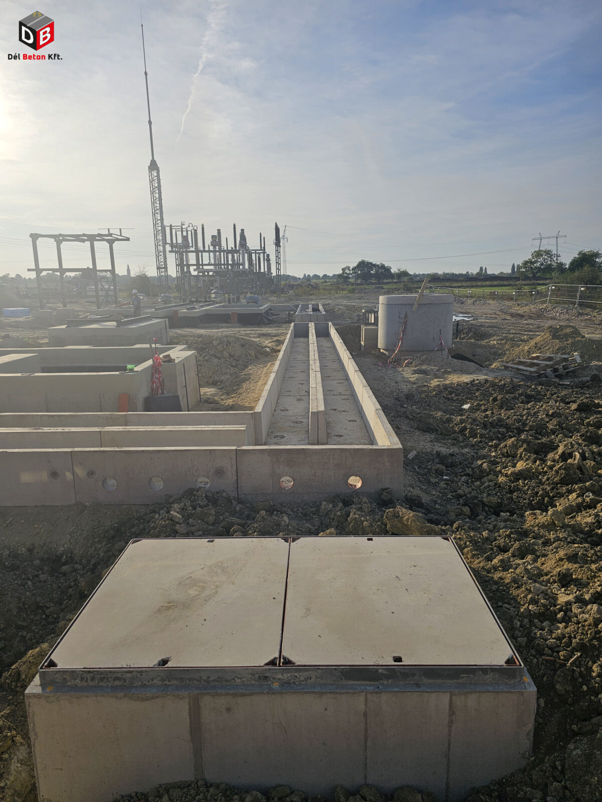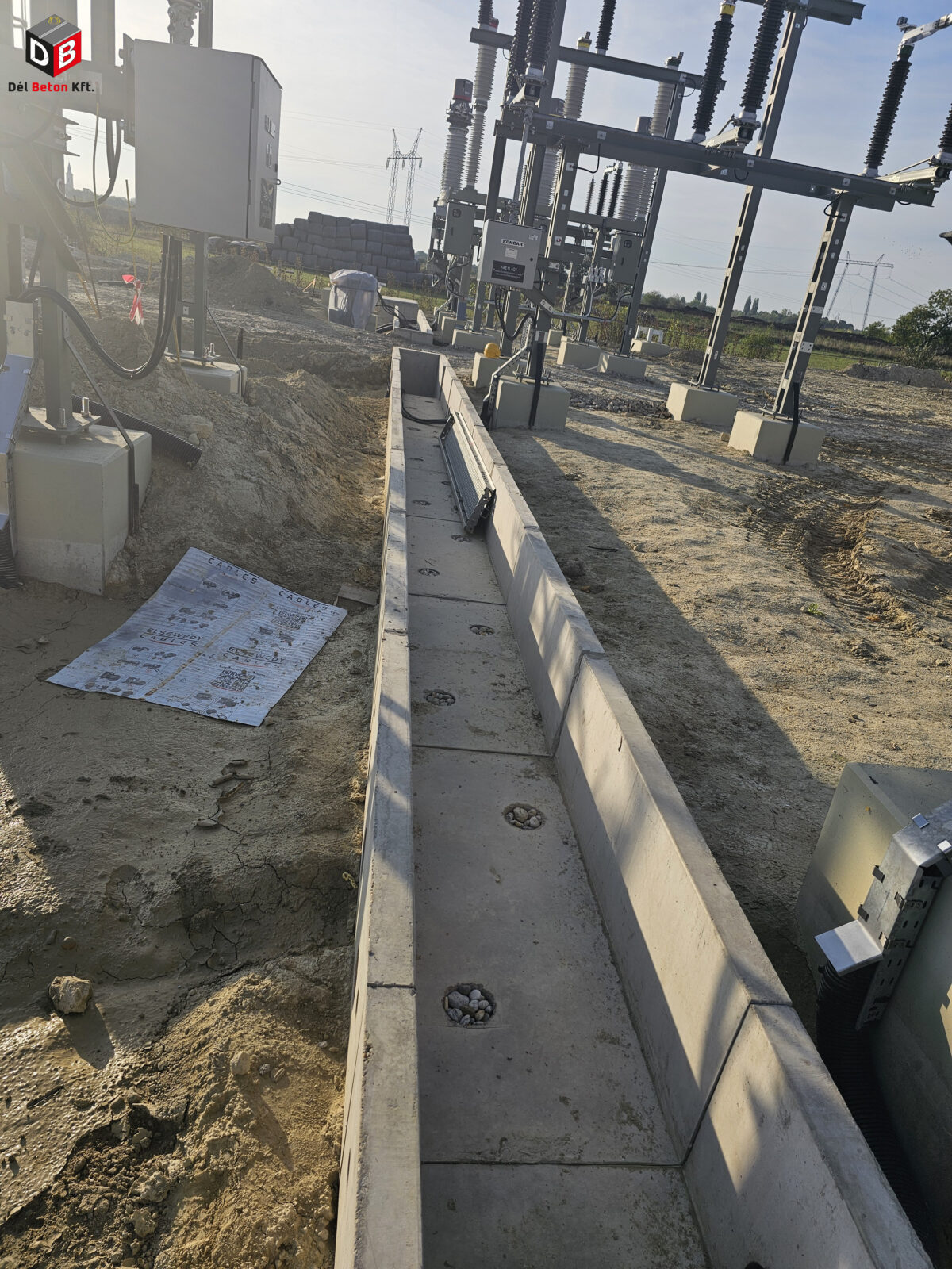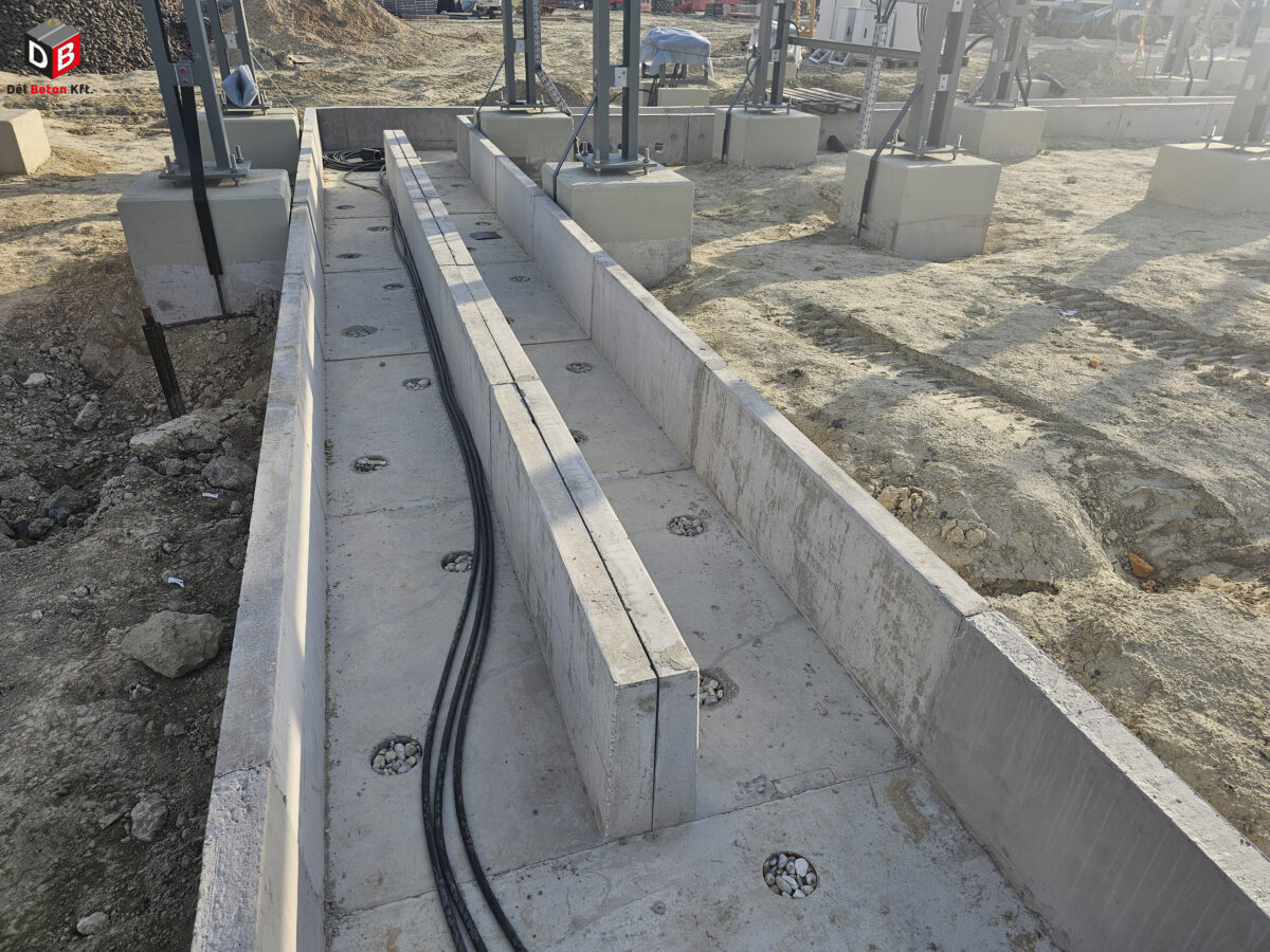 400fm hosszban épült be BM30/50/40 bordás mederburkoló elem, melyekre a kapubejárókban teherbíró fedlapok kerültek elhelyezésre.