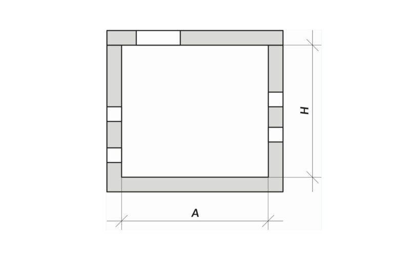 -az akna keresztmetszeti belső méretét „A x B” és az akna belső magasságát „H”,